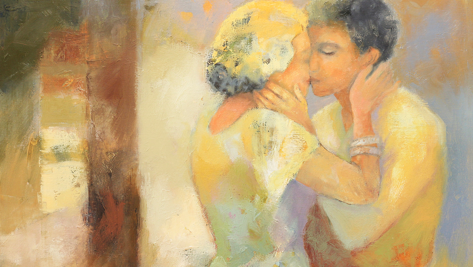 "I love your romantic painting Soft Embrace. The soft colors, and the way the figures connect, draws me in every time. It brings a sense of warmth and quiet beauty to my space."